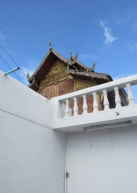 ราวบันไดขึ้นสู่ประตูวิหารเป็นมกรคายนาคตามสไตล์ล้านนา...