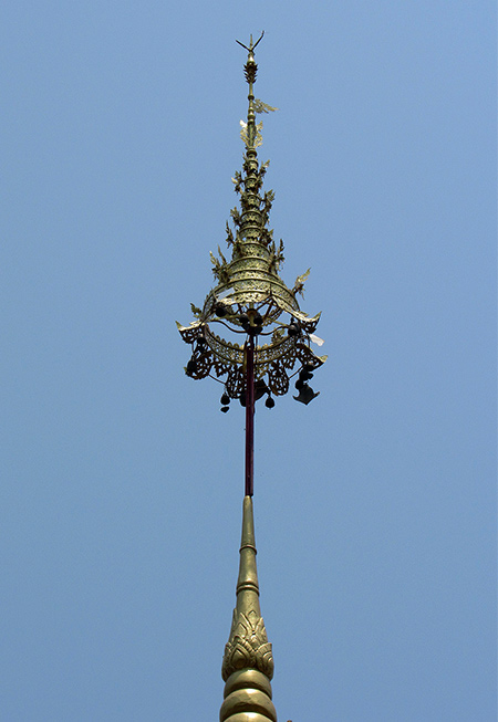 พระเจดีย์วัดแม่ทะสามัคคีตั้งอยู่หลังวิหารทาสีขาว สีทอง และสีแดง บนฐานหกเหลี่ยมกว้าง ๑๐ เมตร....