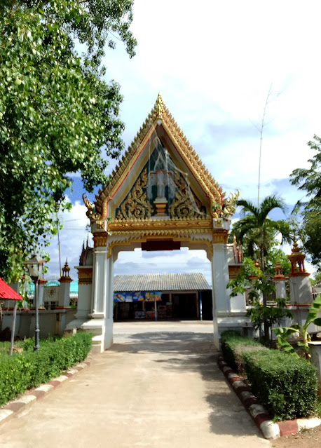 ด้านซ้ายมือเห็นอุโบสถ (3) โอบล้อมด้วยศาลาราย (4)... ผมนำจักรยานเข้ามาจอดไว้ใต้ต้นโพธิ์...